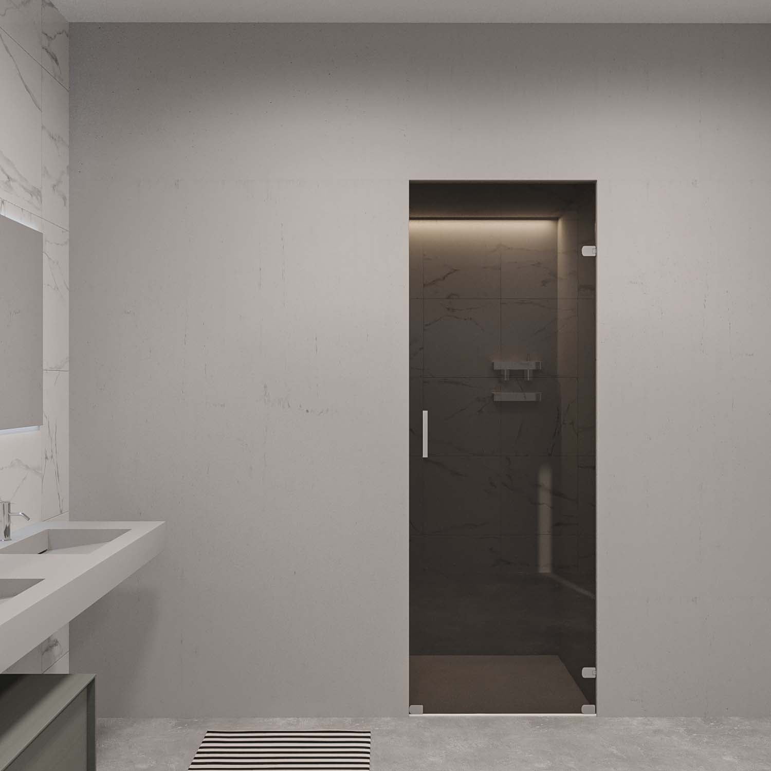 Onze douchedeuren worden volledig op maat gemaakt, zodat ze naadloos aansluiten bij jouw ruimte en interieur. Dankzij het gekleurde glas creëert u extra sfeer en privacy, terwijl de deur zorgt voor een praktische en waterdichte afsluiting.