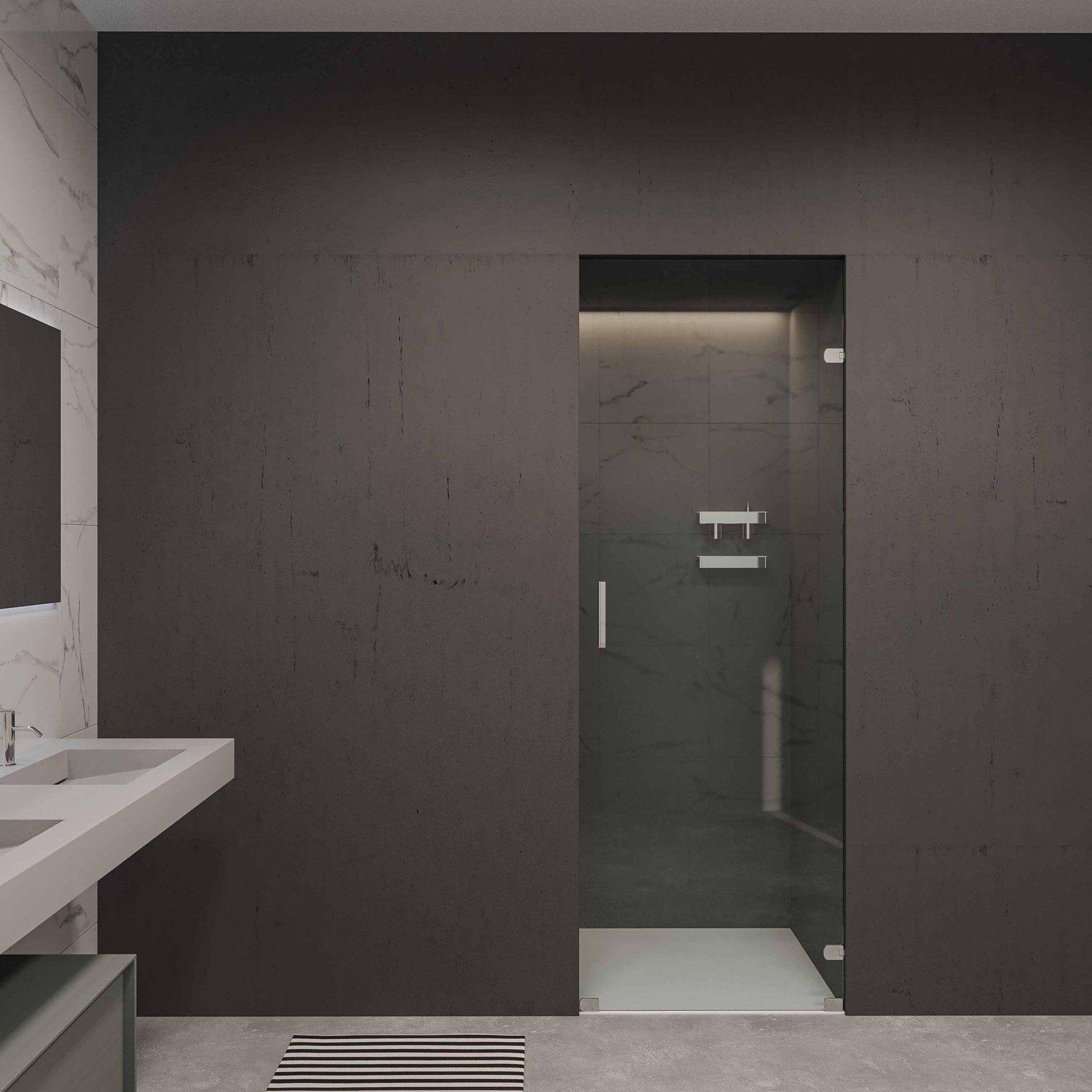 Onze douchedeuren worden volledig op maat gemaakt, zodat ze naadloos aansluiten bij jouw ruimte en interieur. Dankzij het transparante glas behoudt u een ruimtelijk gevoel, terwijl de deur zorgt voor een praktische en waterdichte afsluiting.