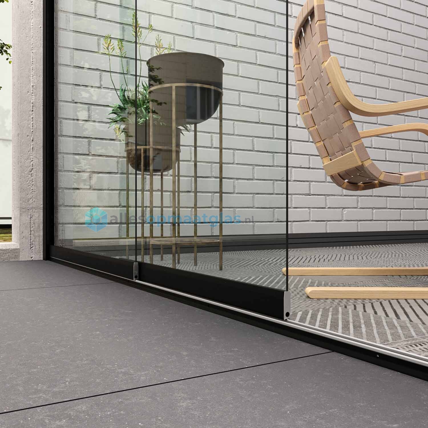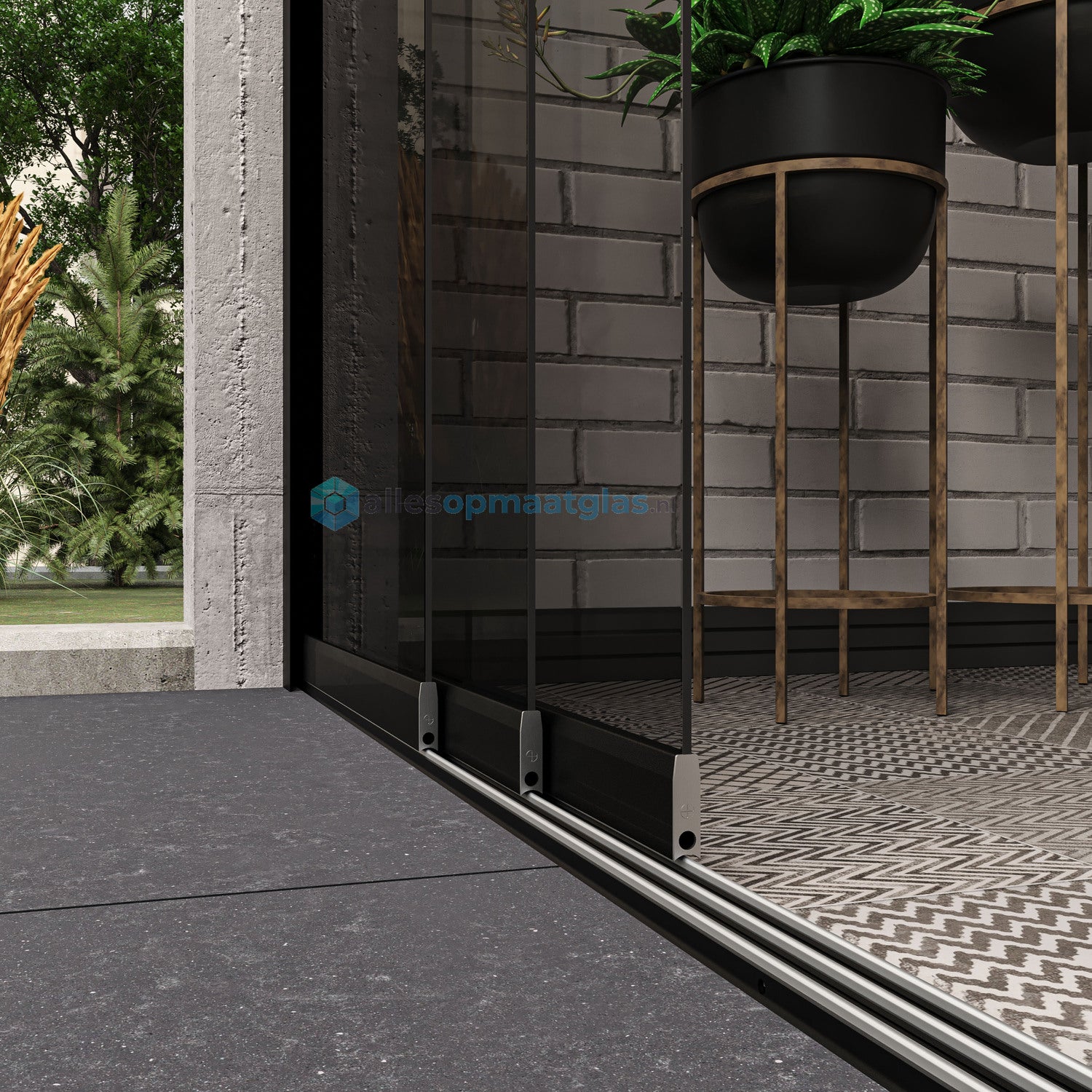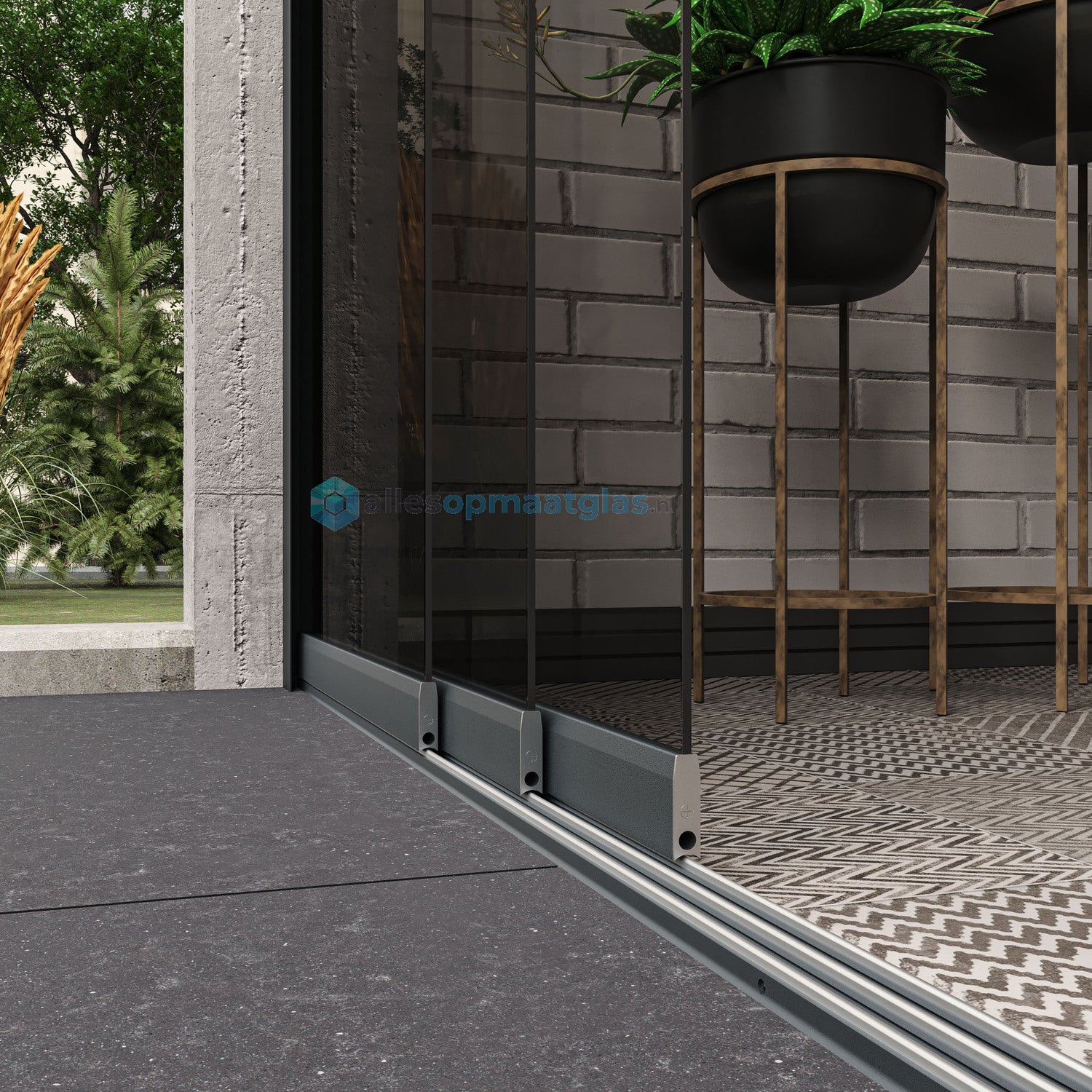 - 2-rails glazen schuifwand → tot maximaal 205 cm