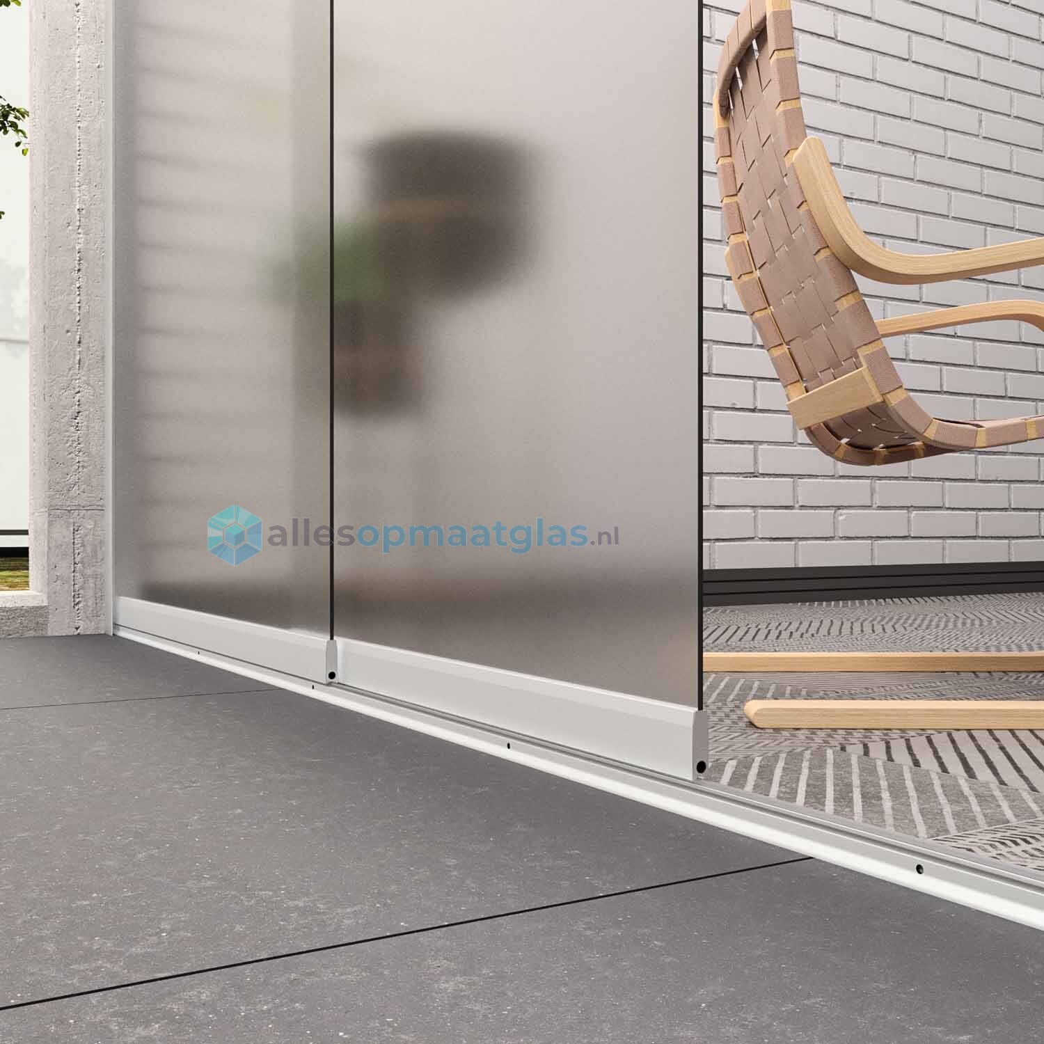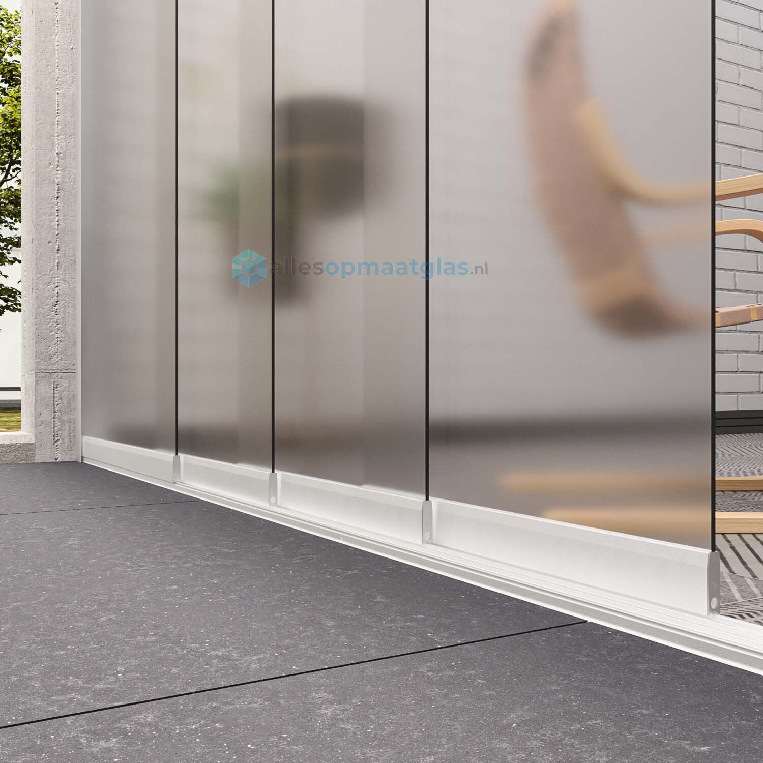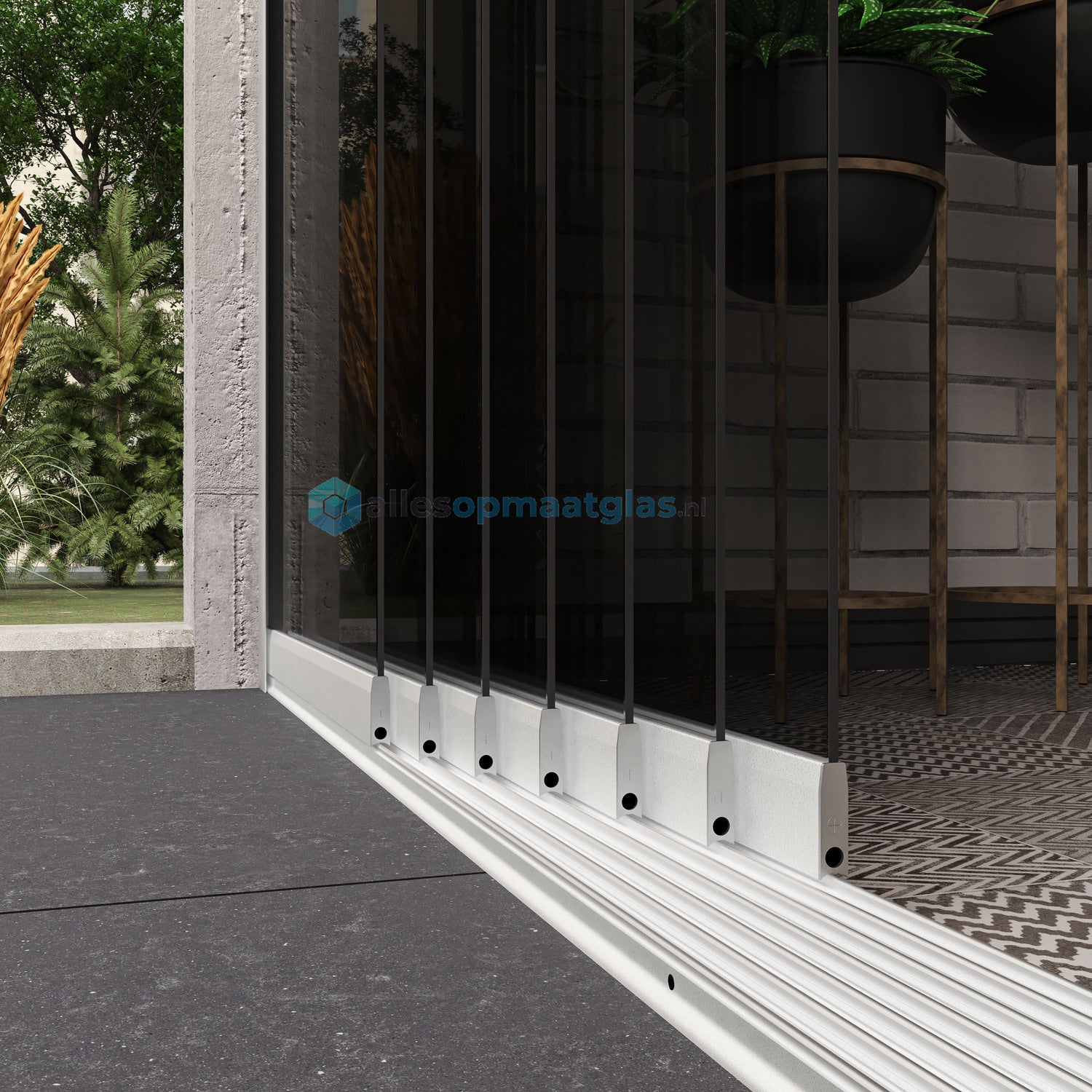 Onze op maat glazen schuifwanden zijn verkrijgbaar in verschillende railsystemen. Hieronder vindt u een overzicht van de maximale breedtes per systeem: