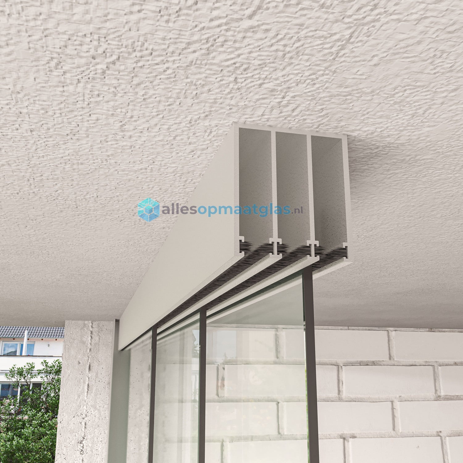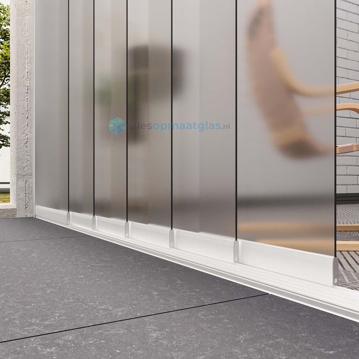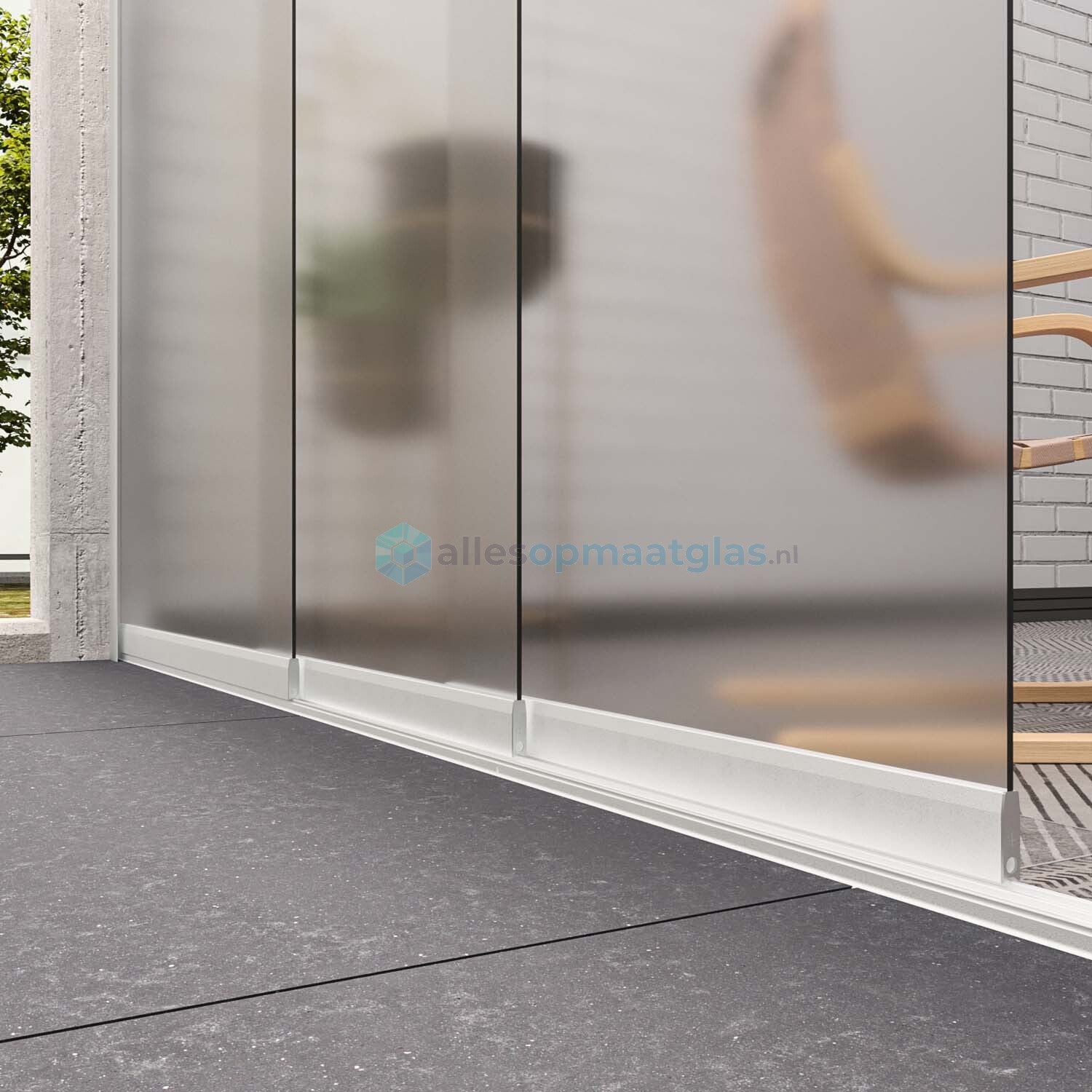 Onze op maat glazen schuifwanden zijn verkrijgbaar in verschillende railsystemen. Hieronder vindt u een overzicht van de maximale breedtes per systeem: