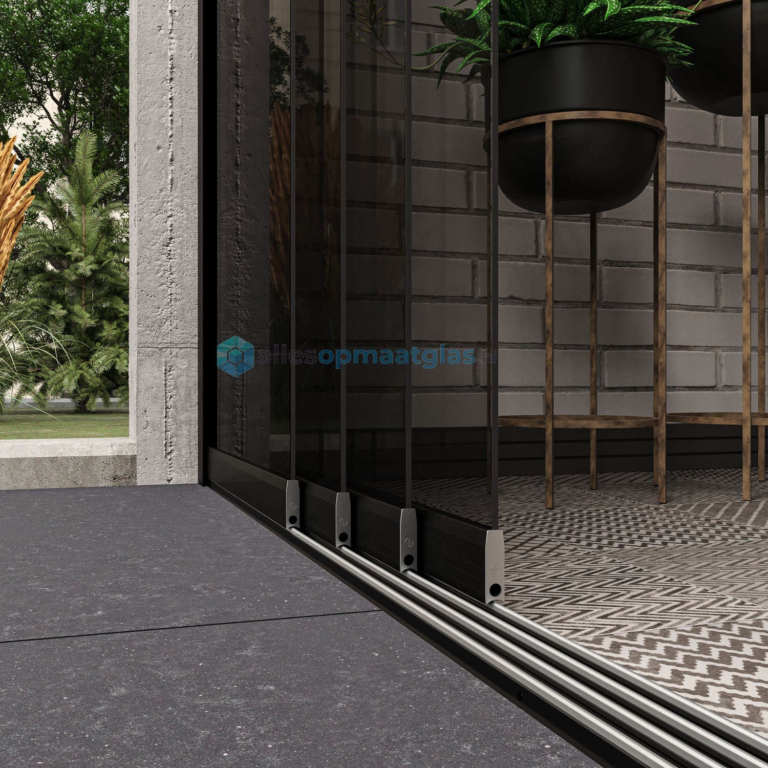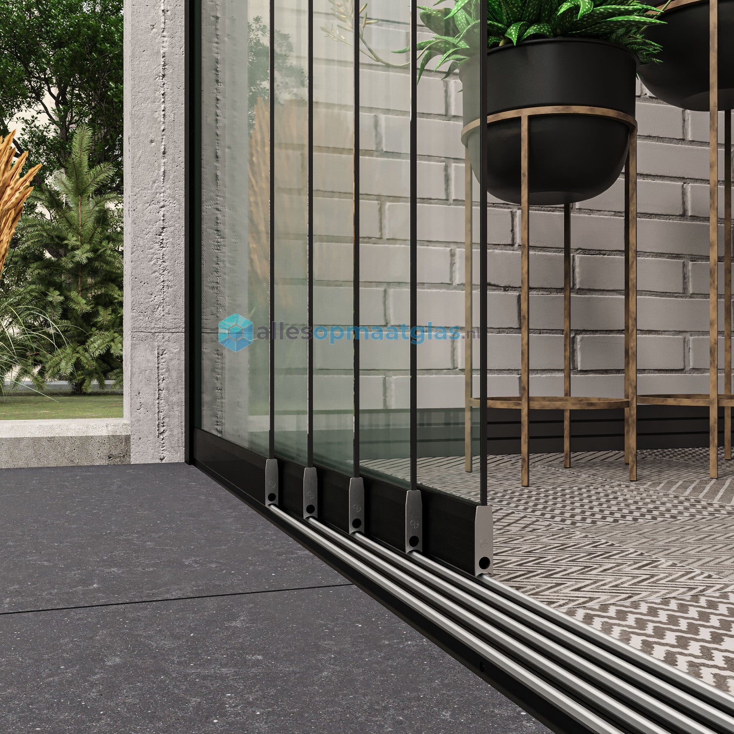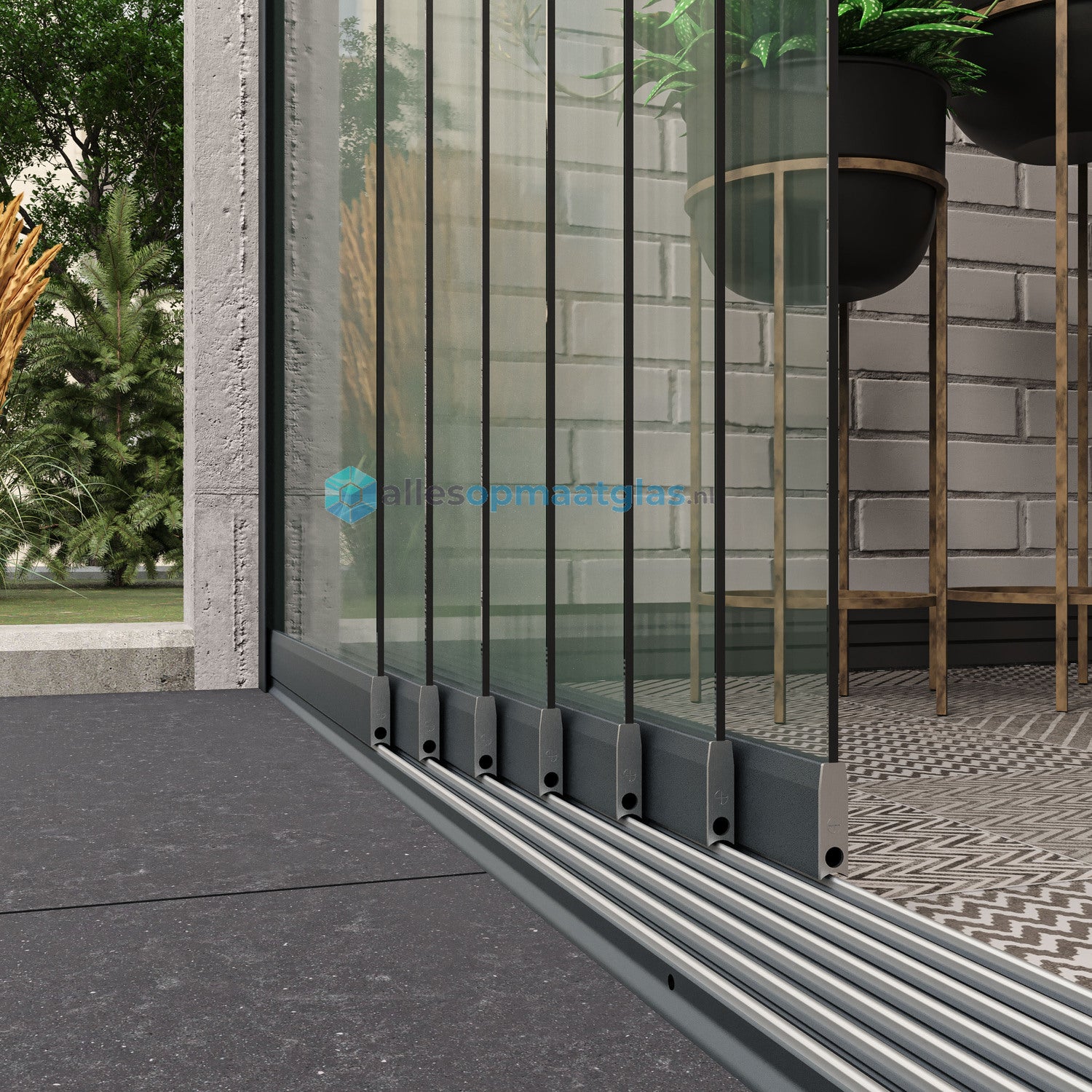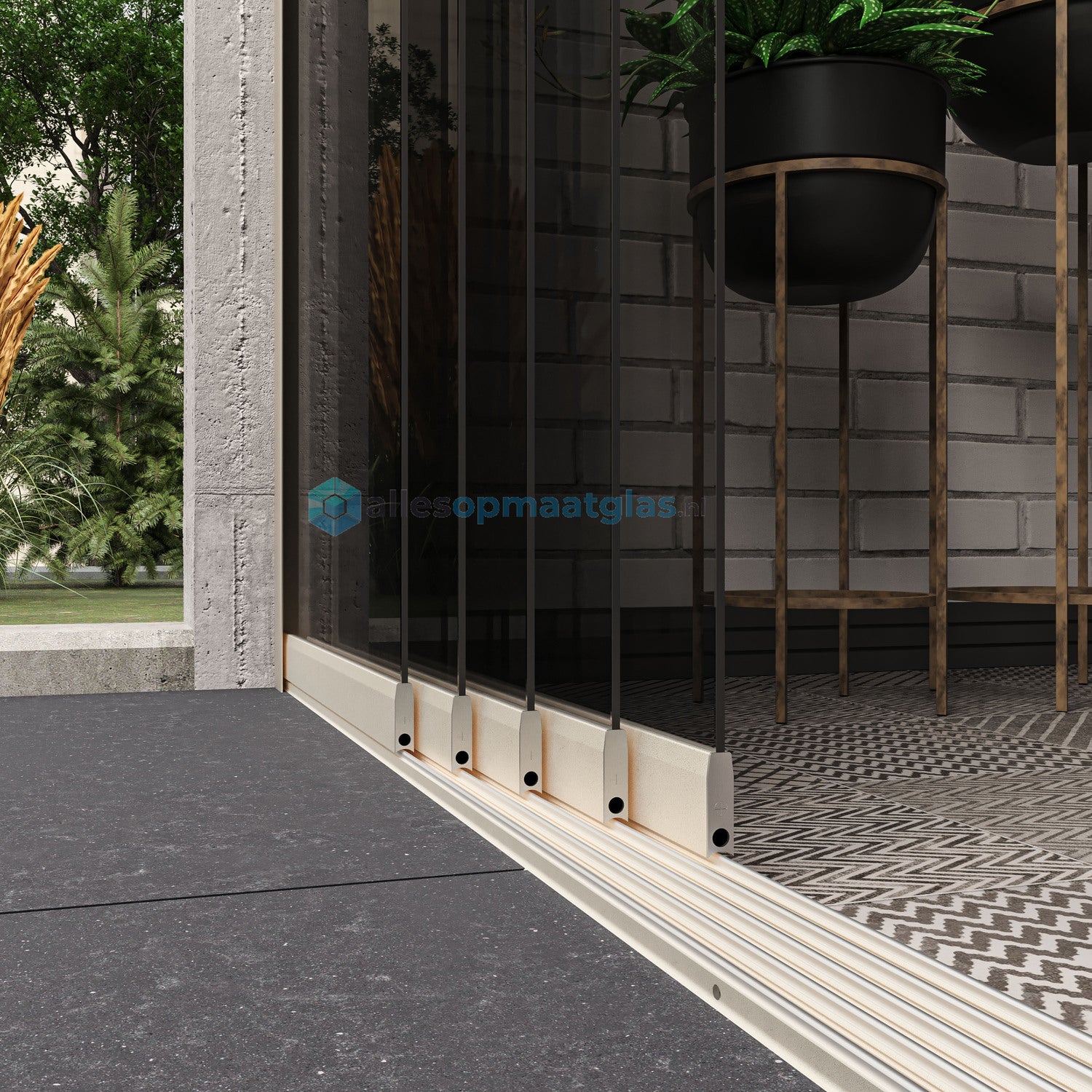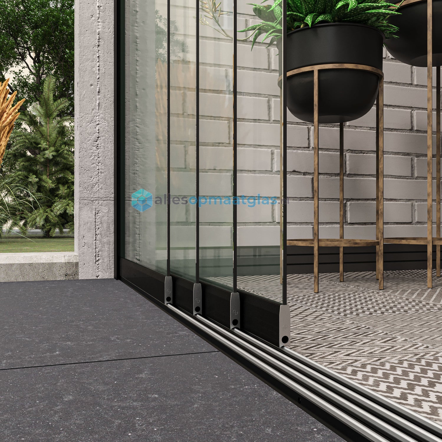 - 6-rails glazen schuifwand → tot maximaal 605 cm