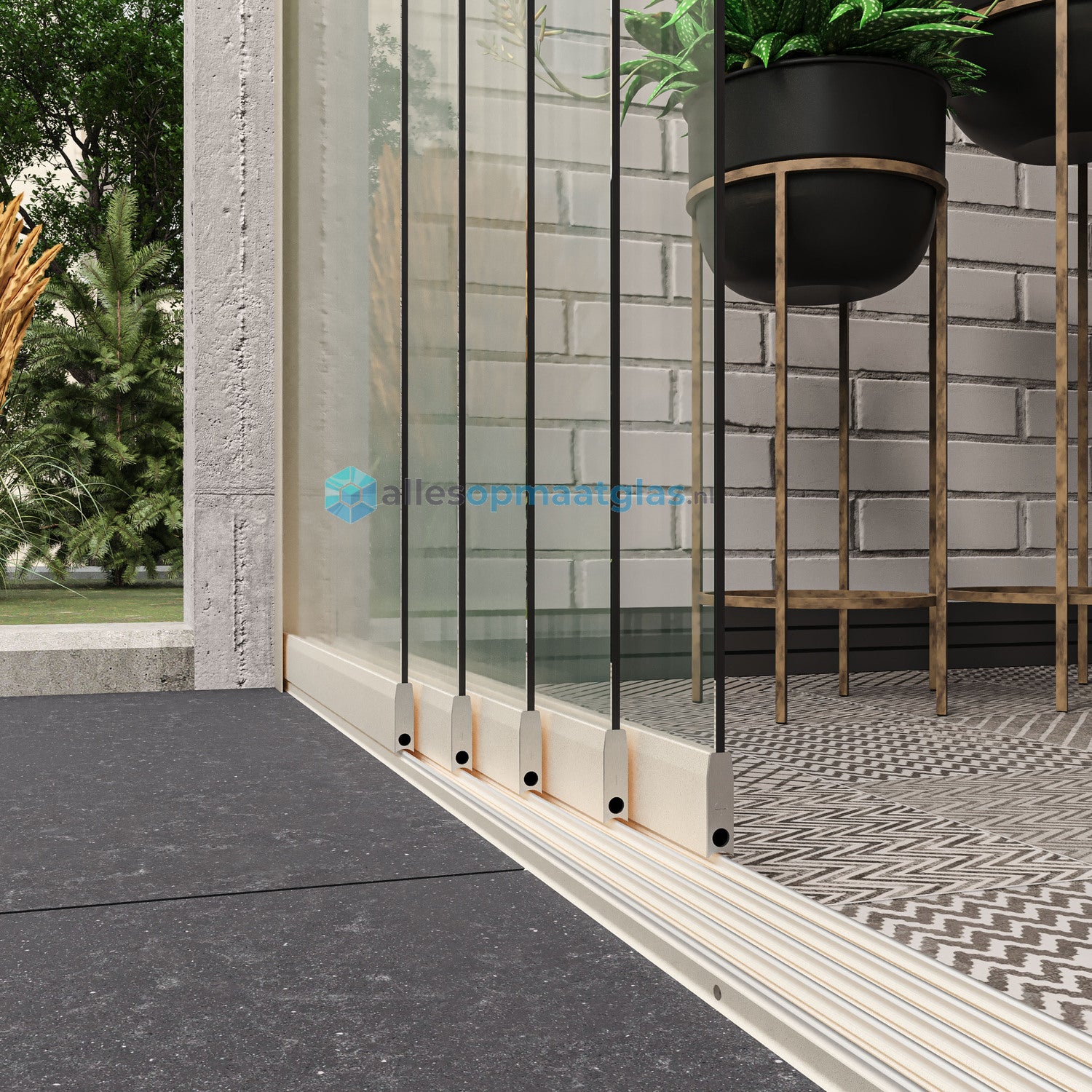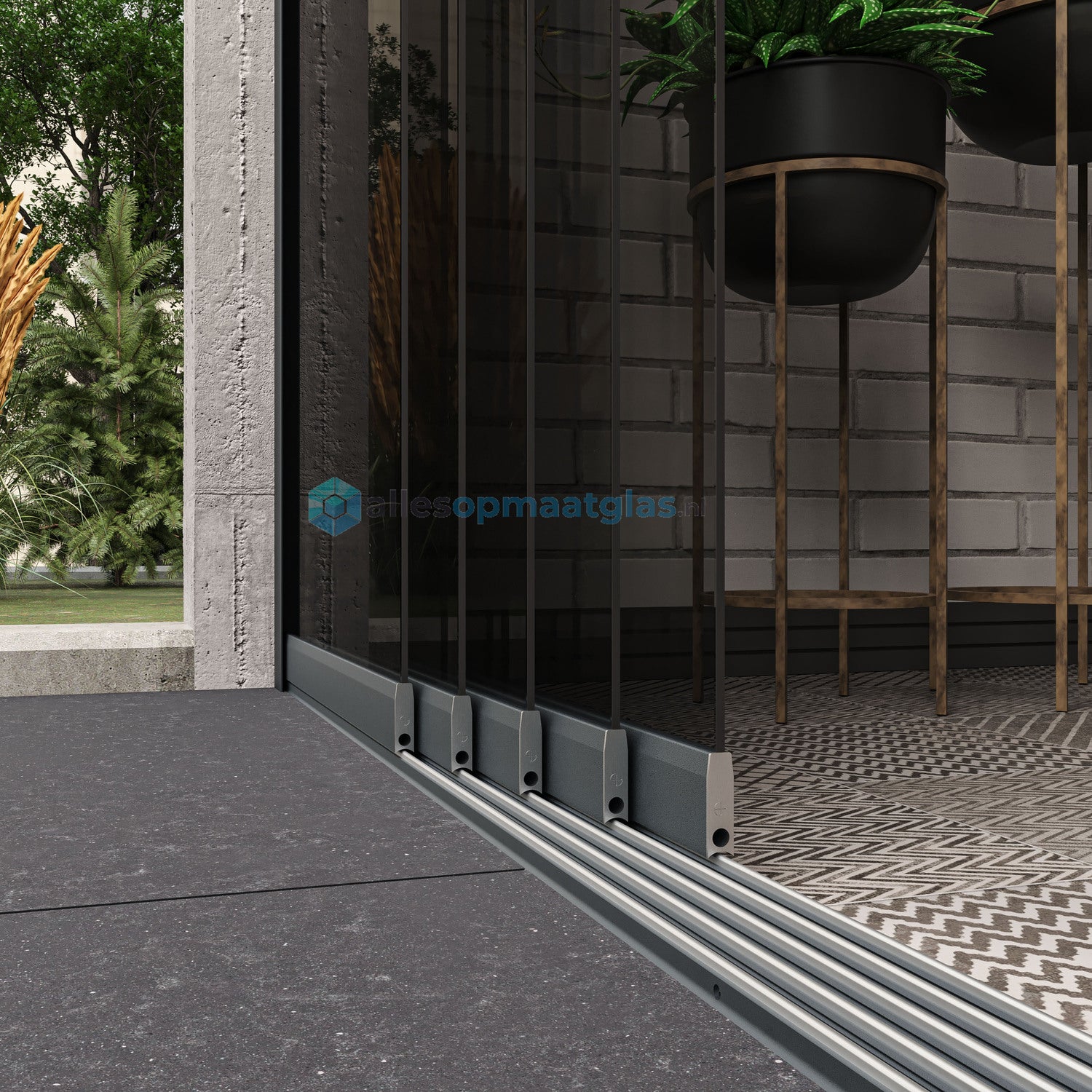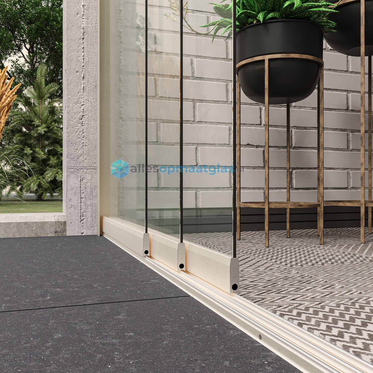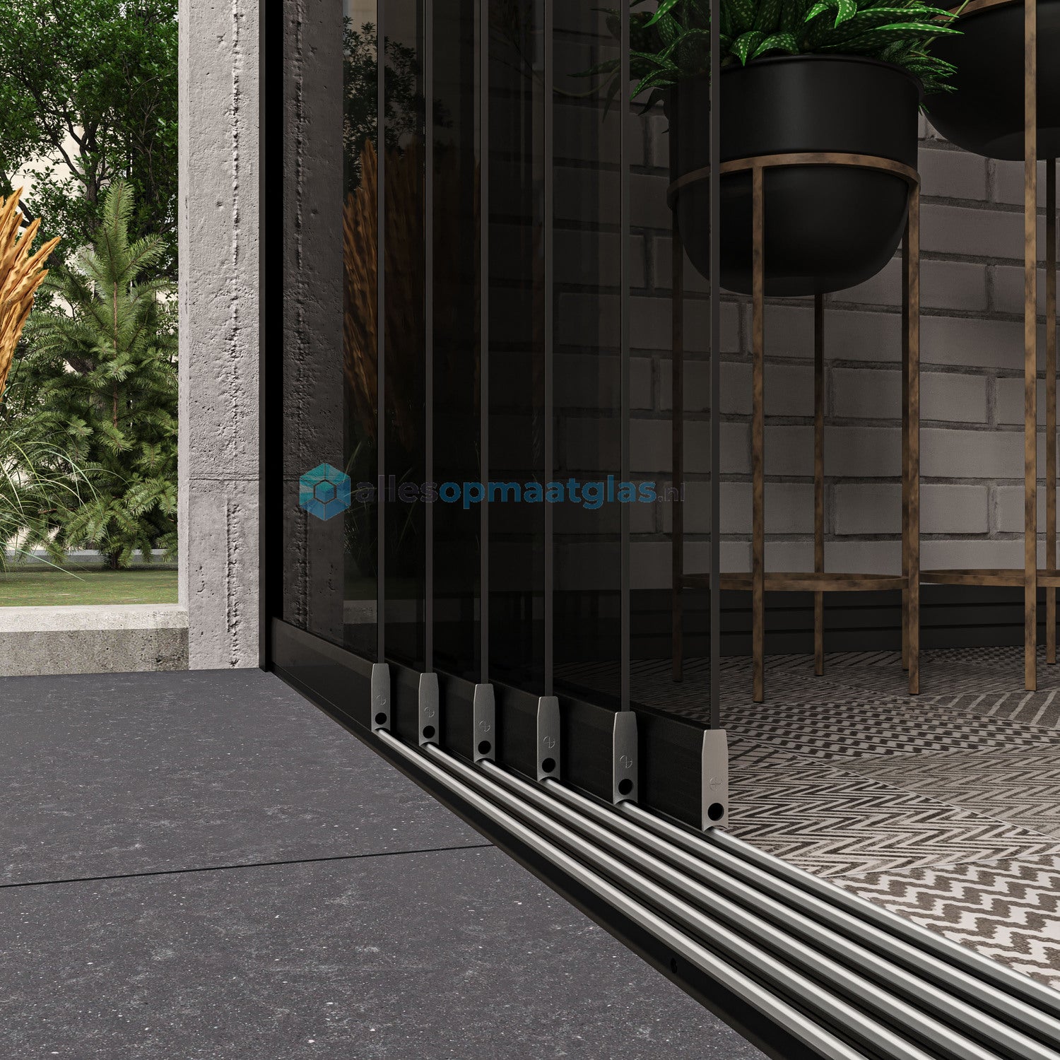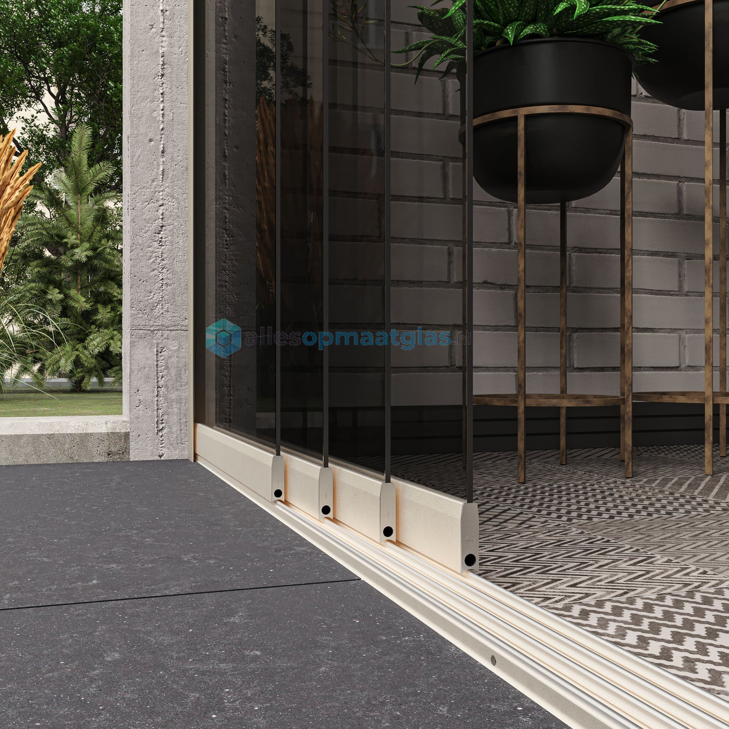 - 6-rails glazen schuifwand → tot maximaal 605 cm