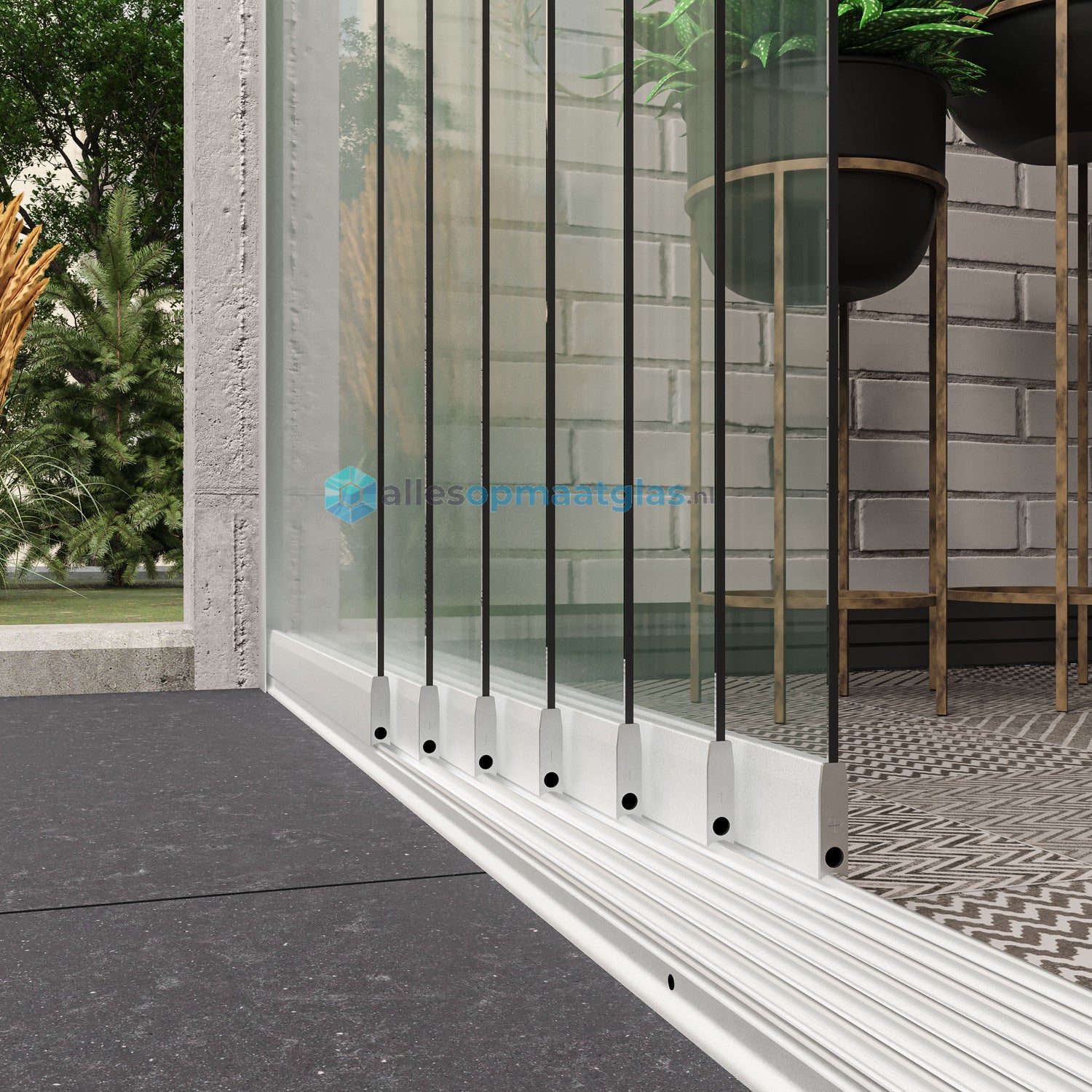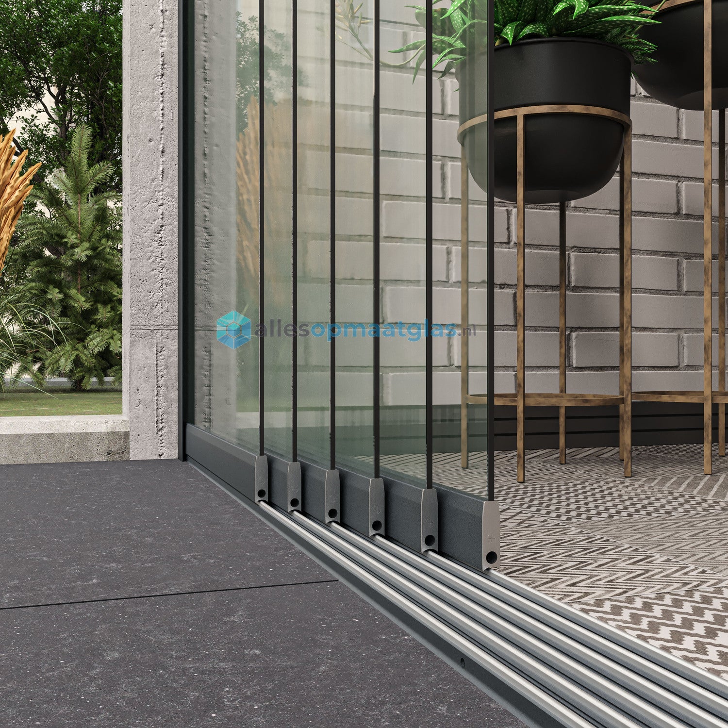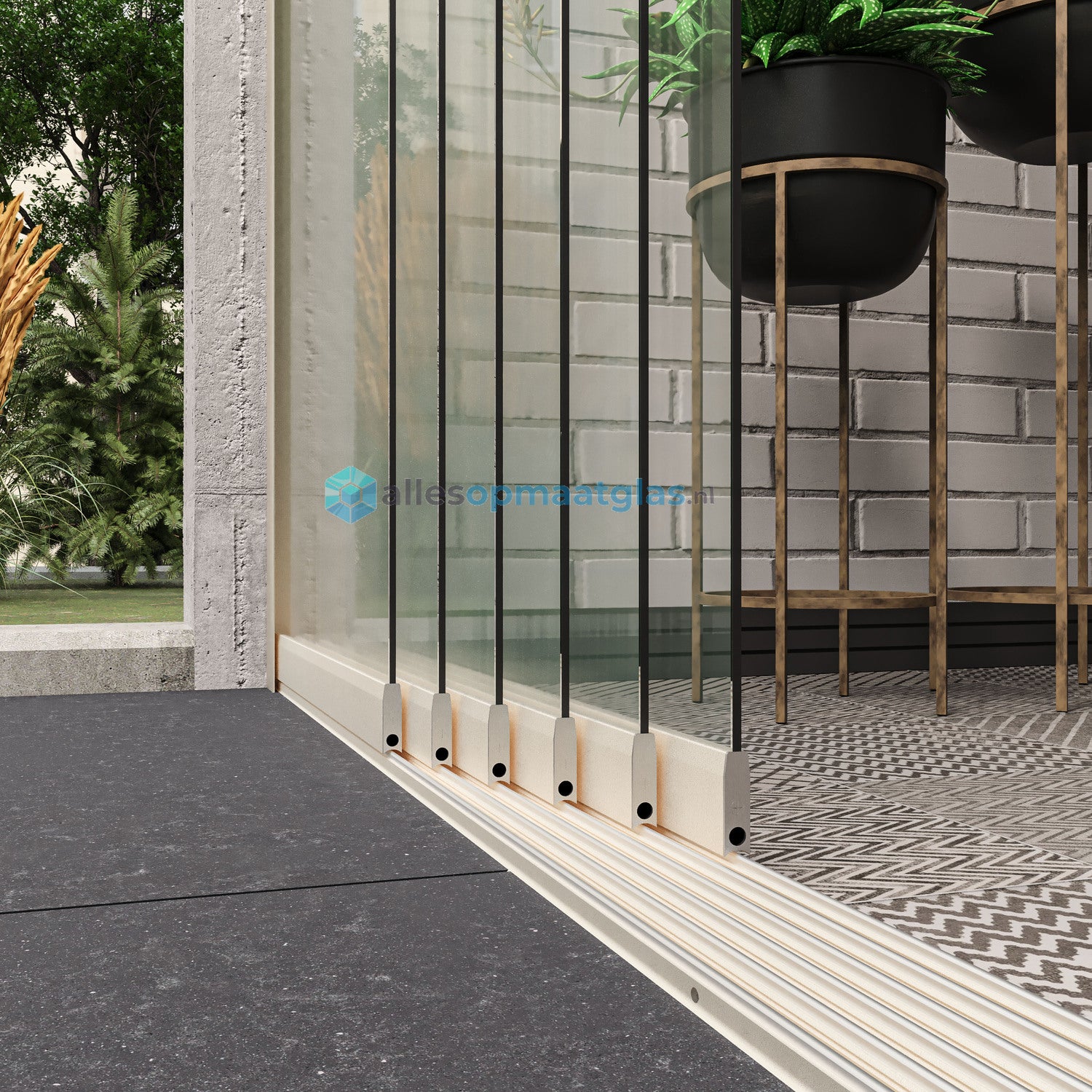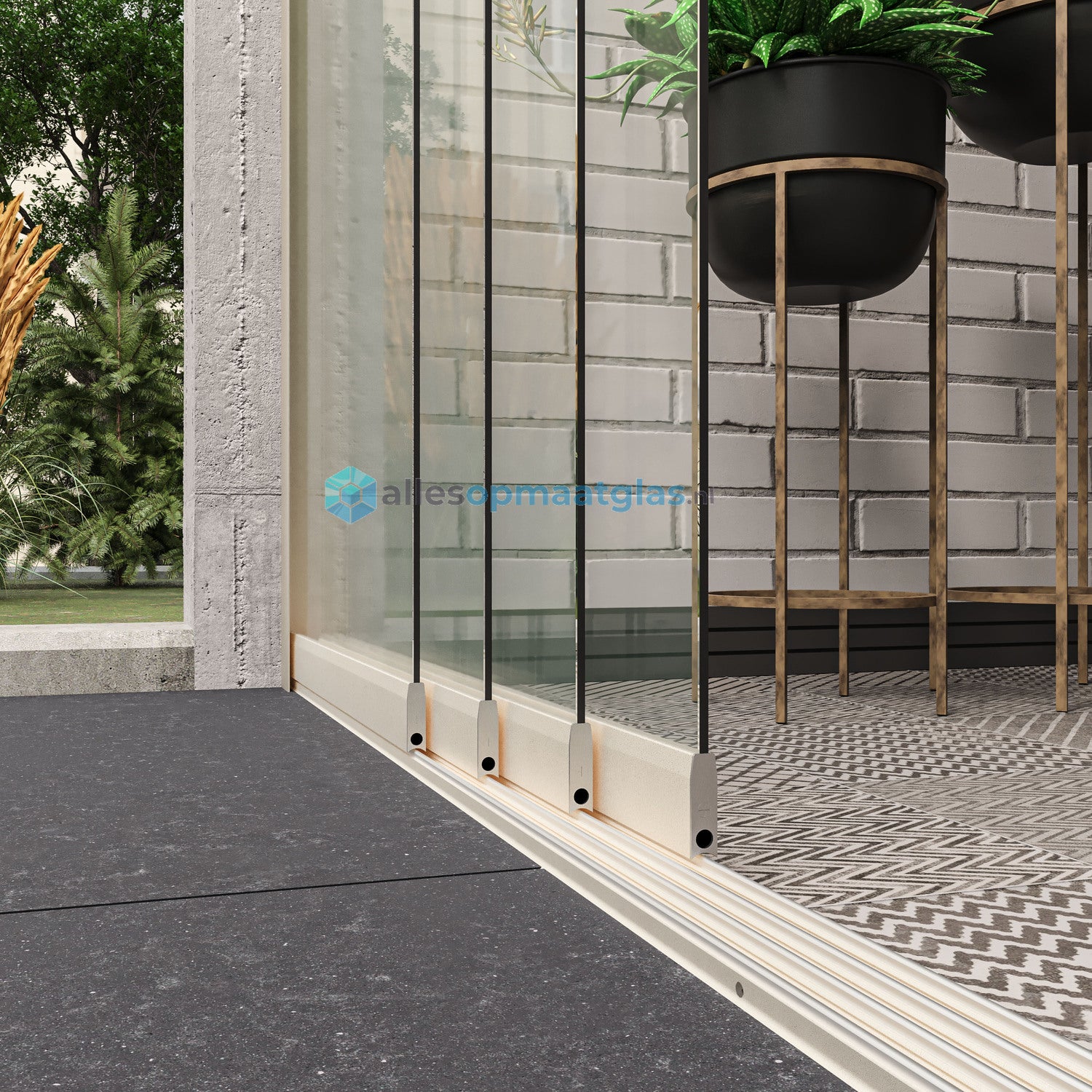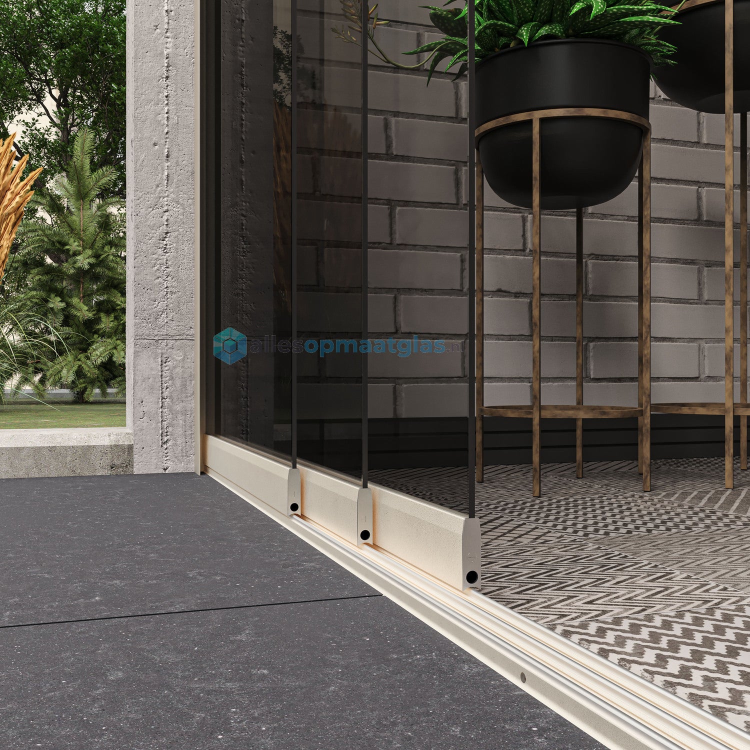 - 6-rails glazen schuifwand → tot maximaal 605 cm