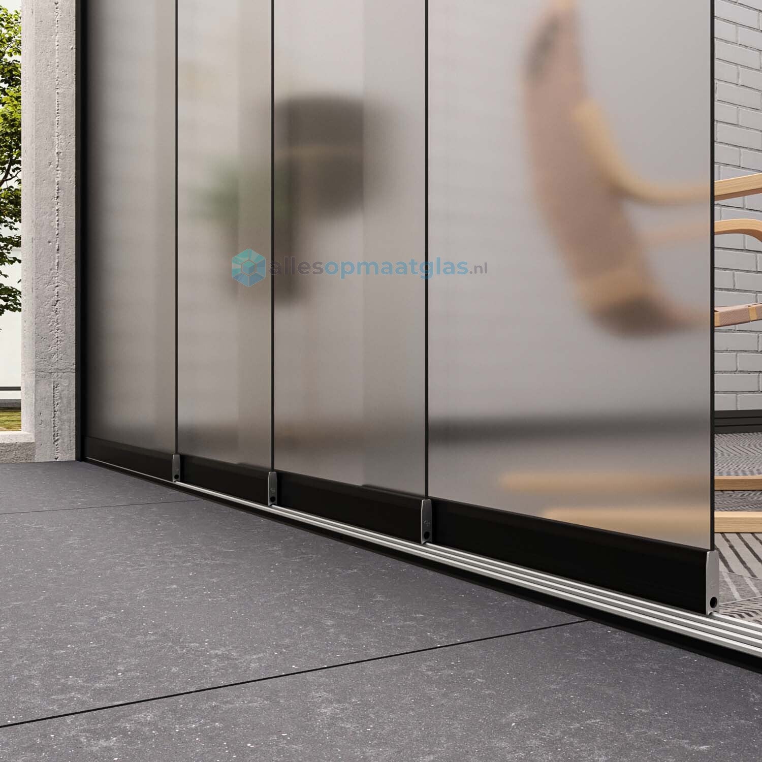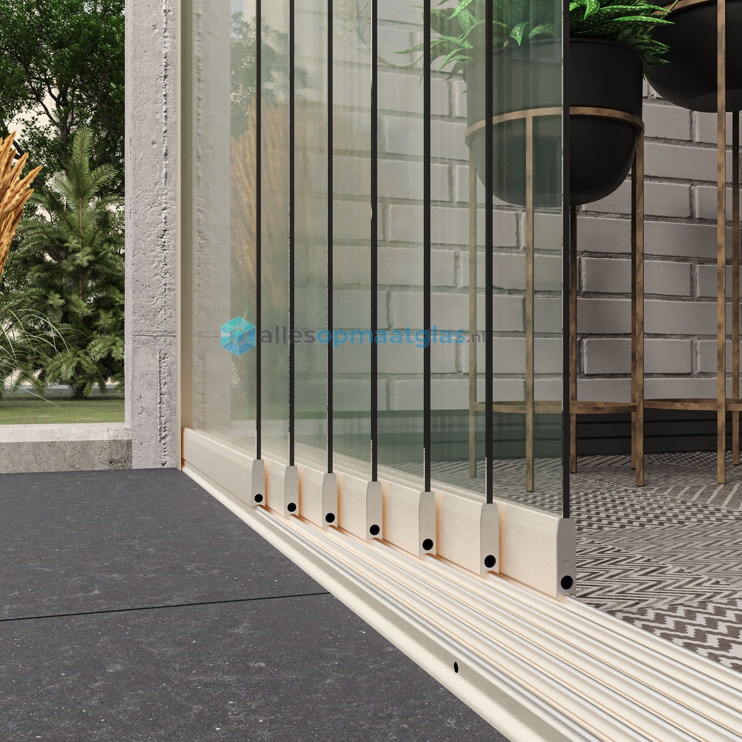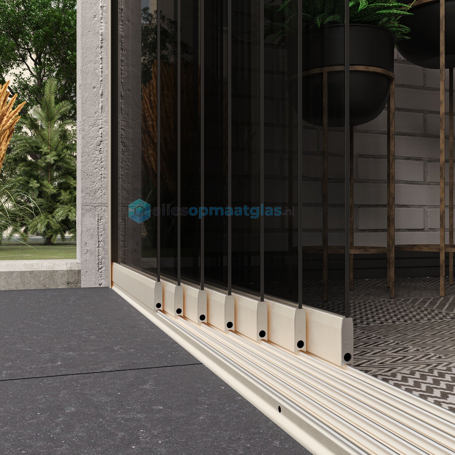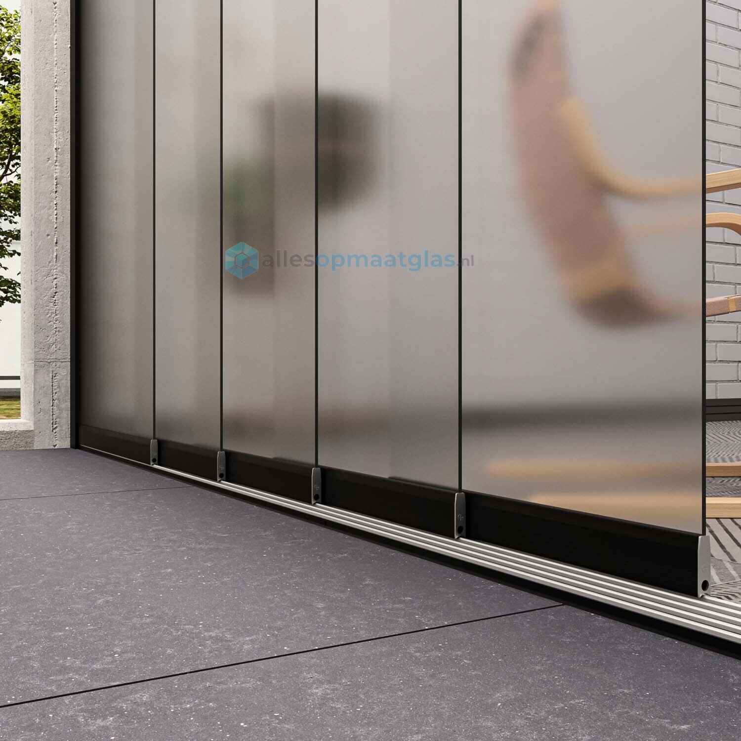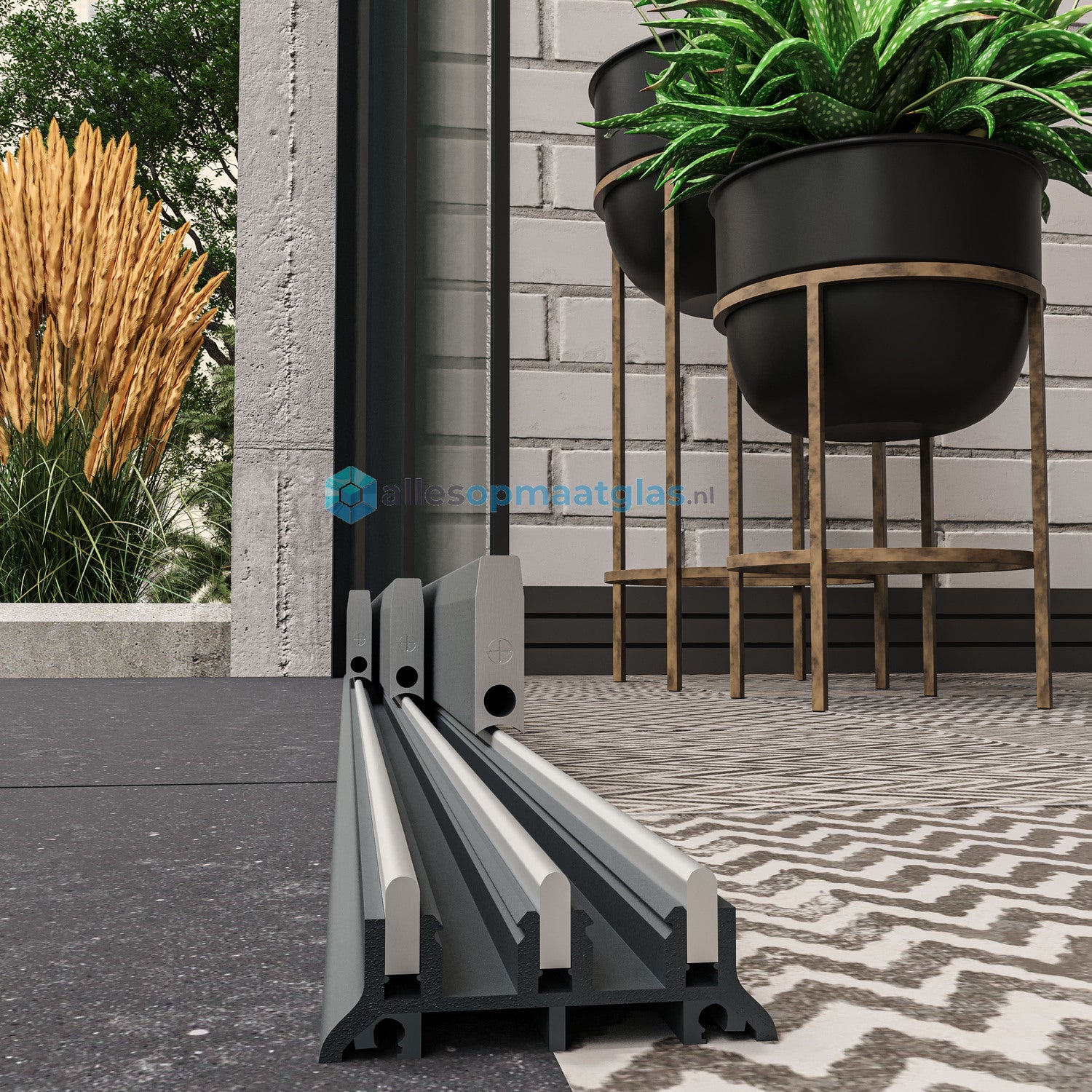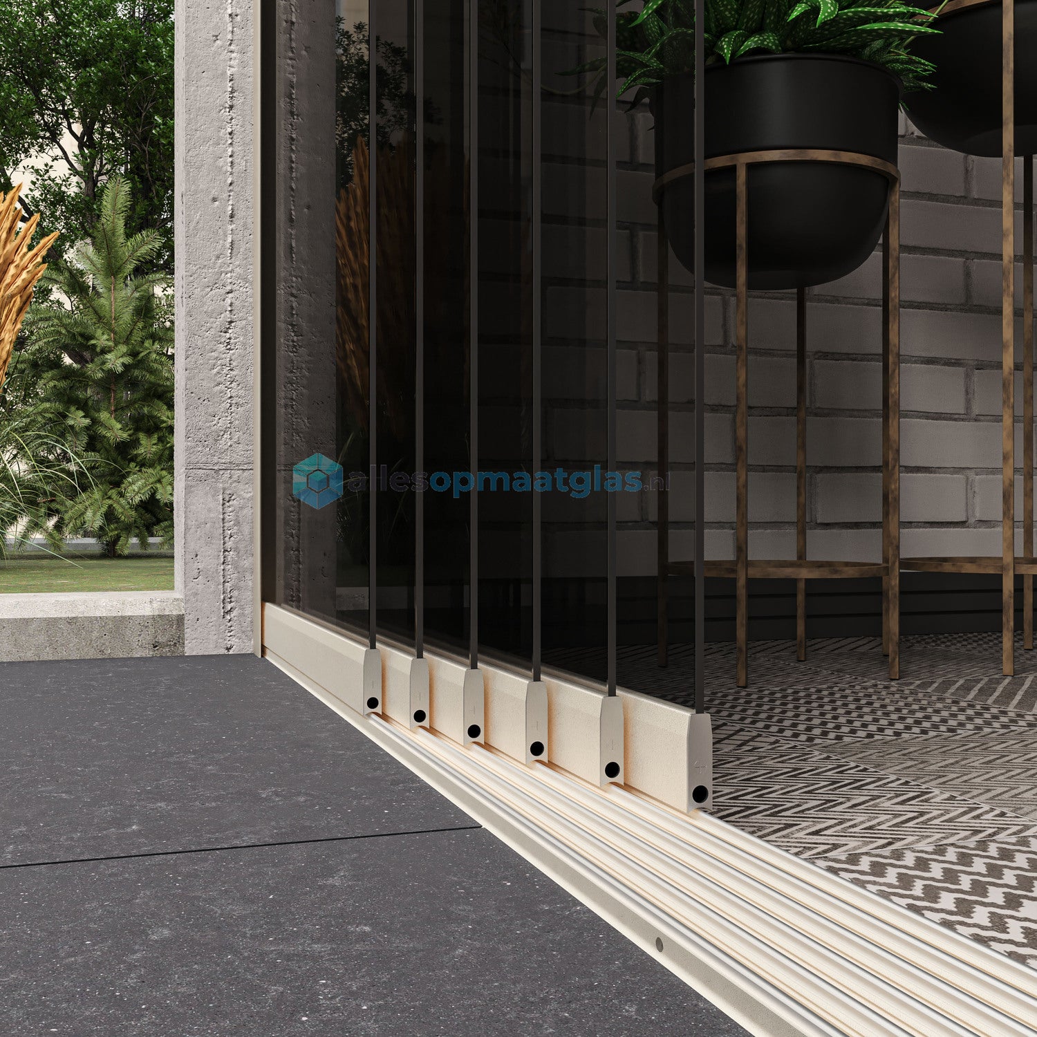 - 6-rails glazen schuifwand → tot maximaal 605 cm
