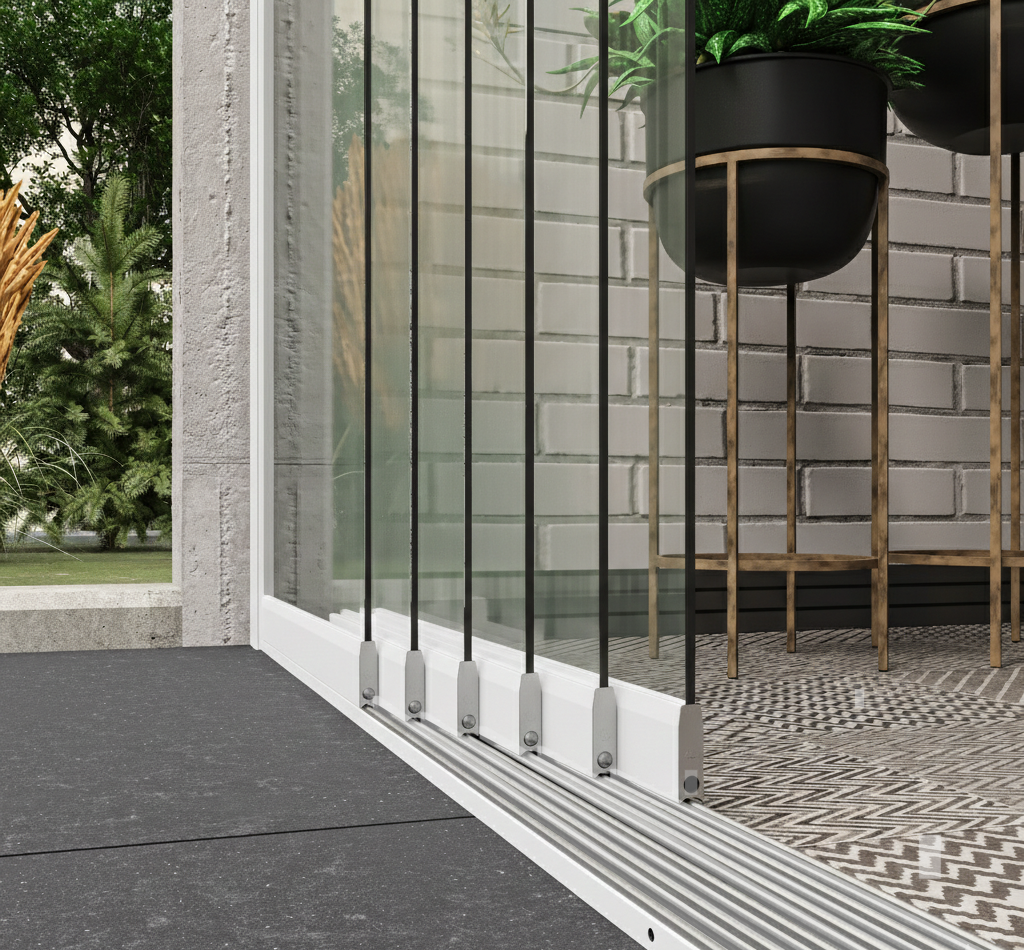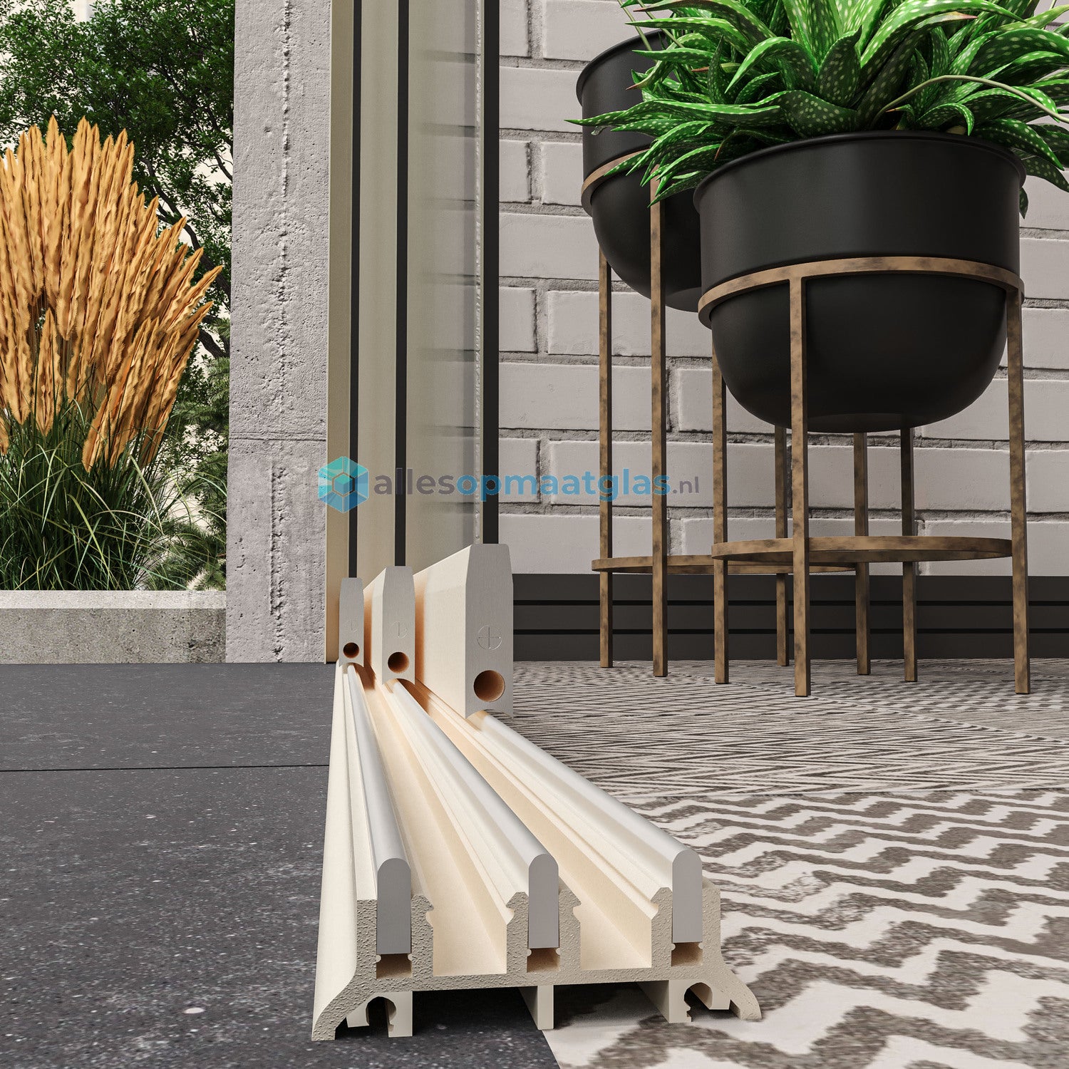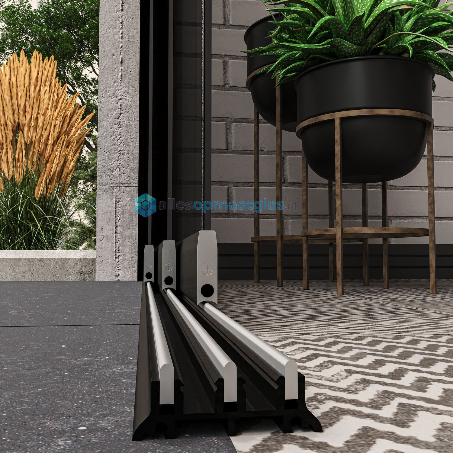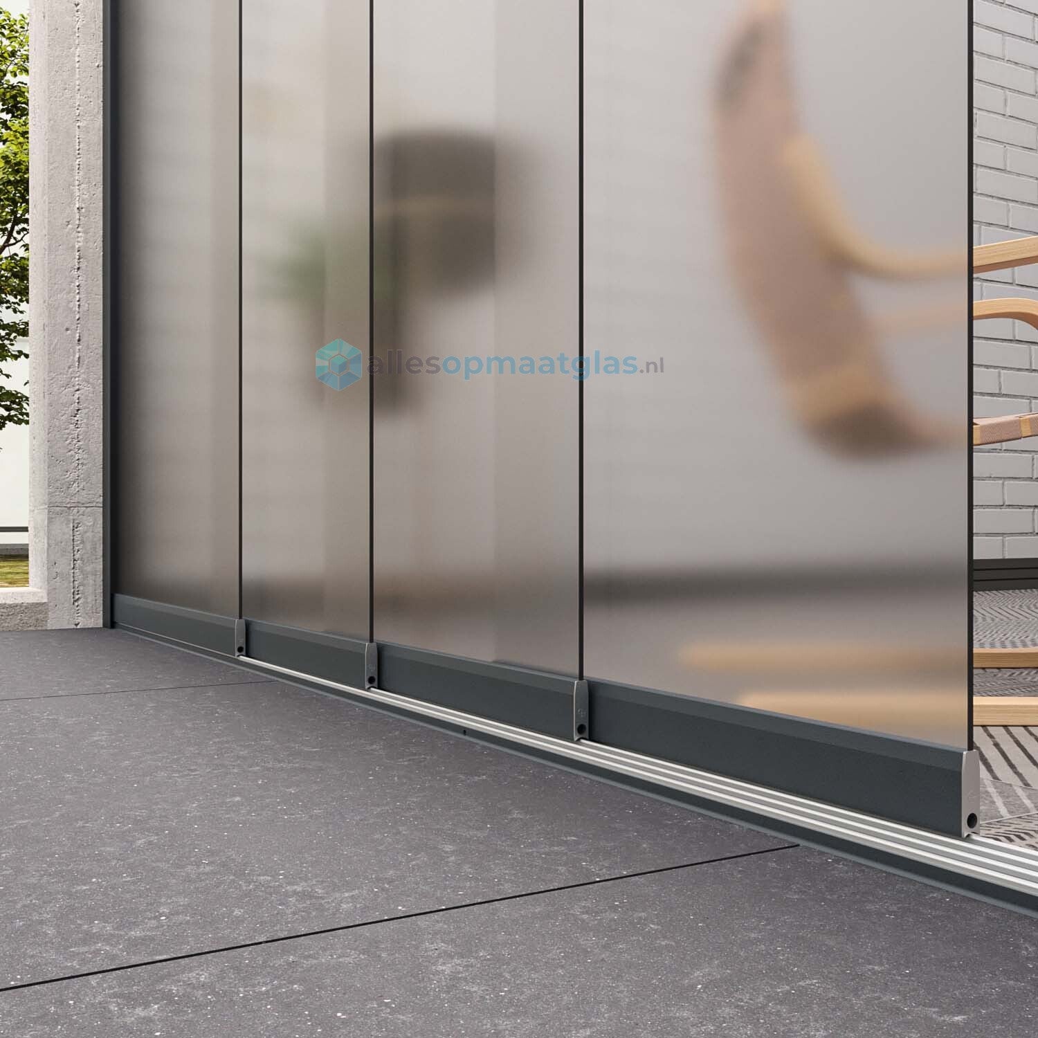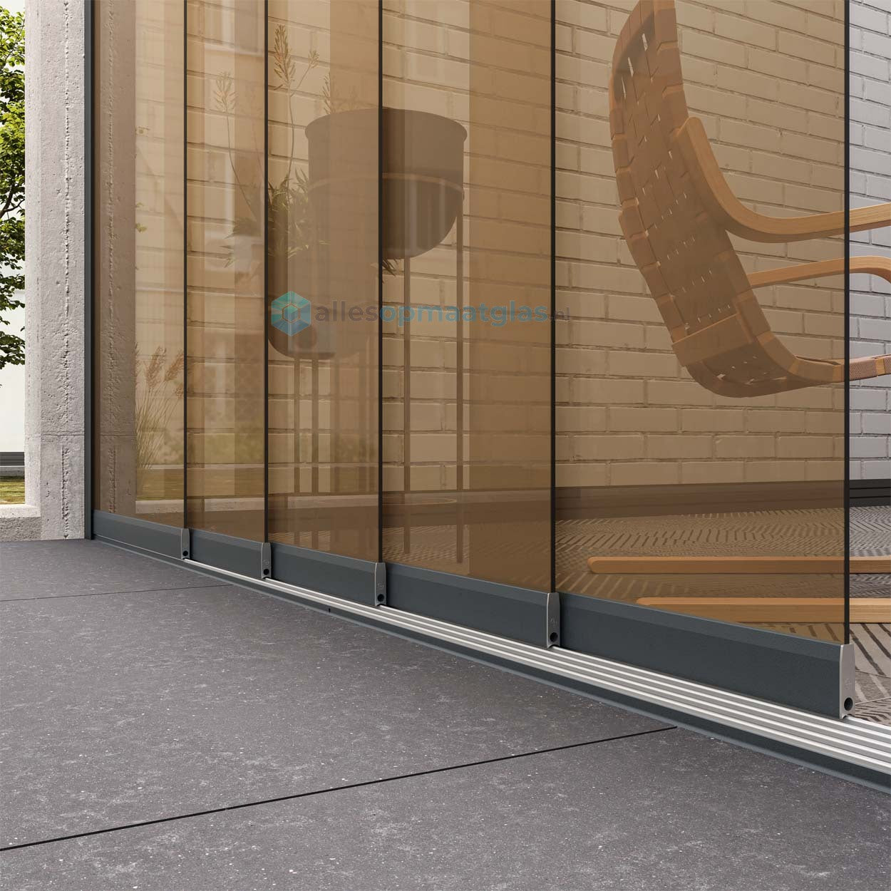 - 6-rails glazen schuifwand → tot maximaal 605 cm