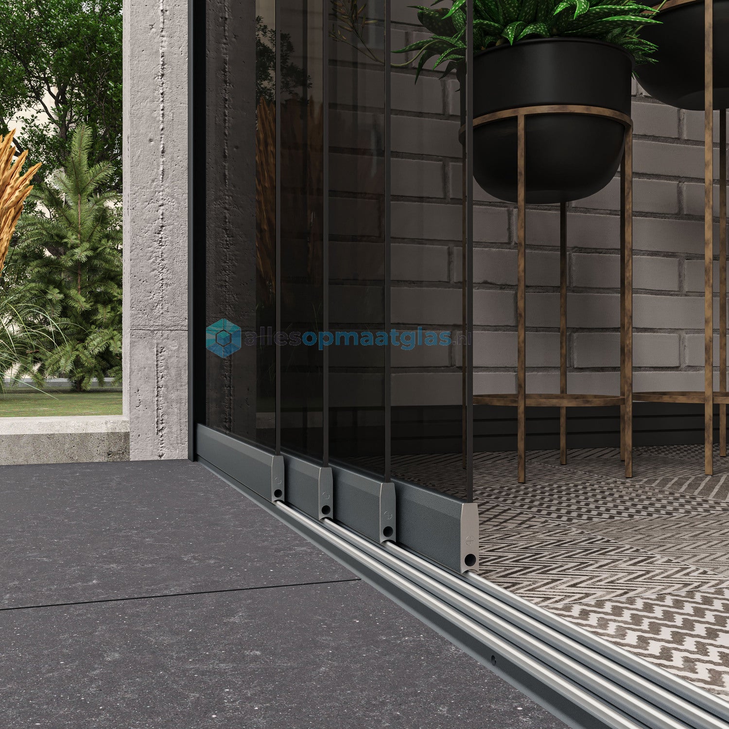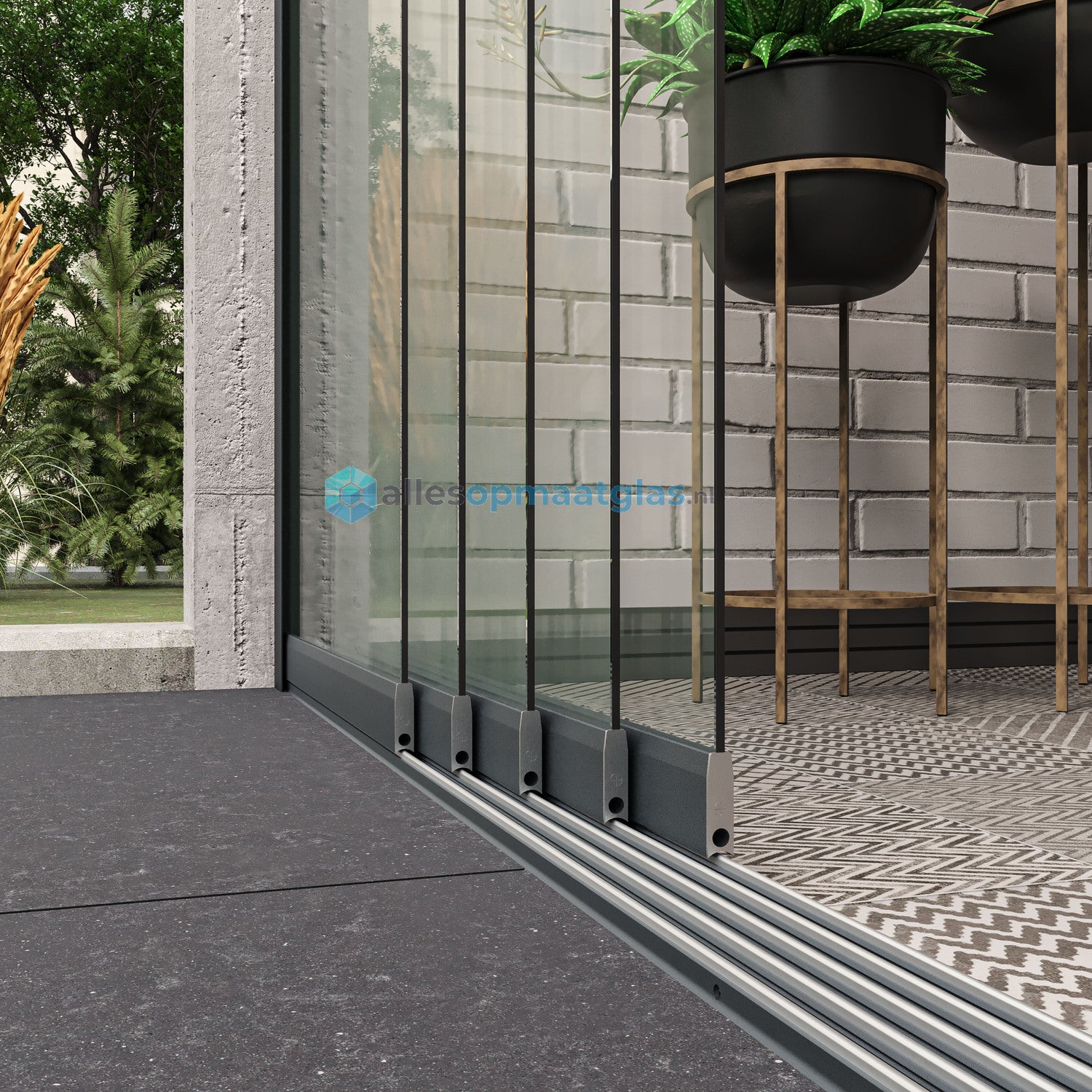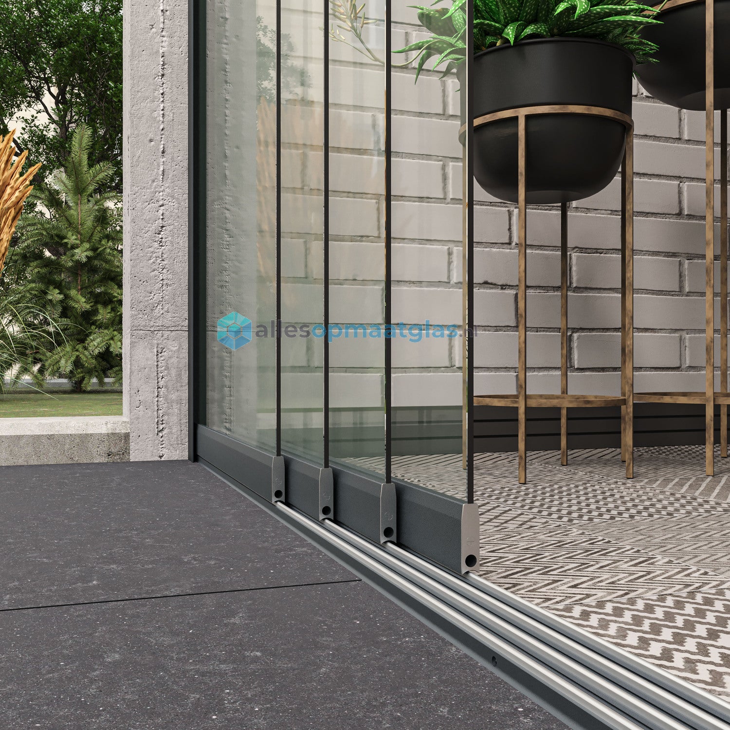 - 5-rails glazen schuifwand → tot maximaal 505 cm