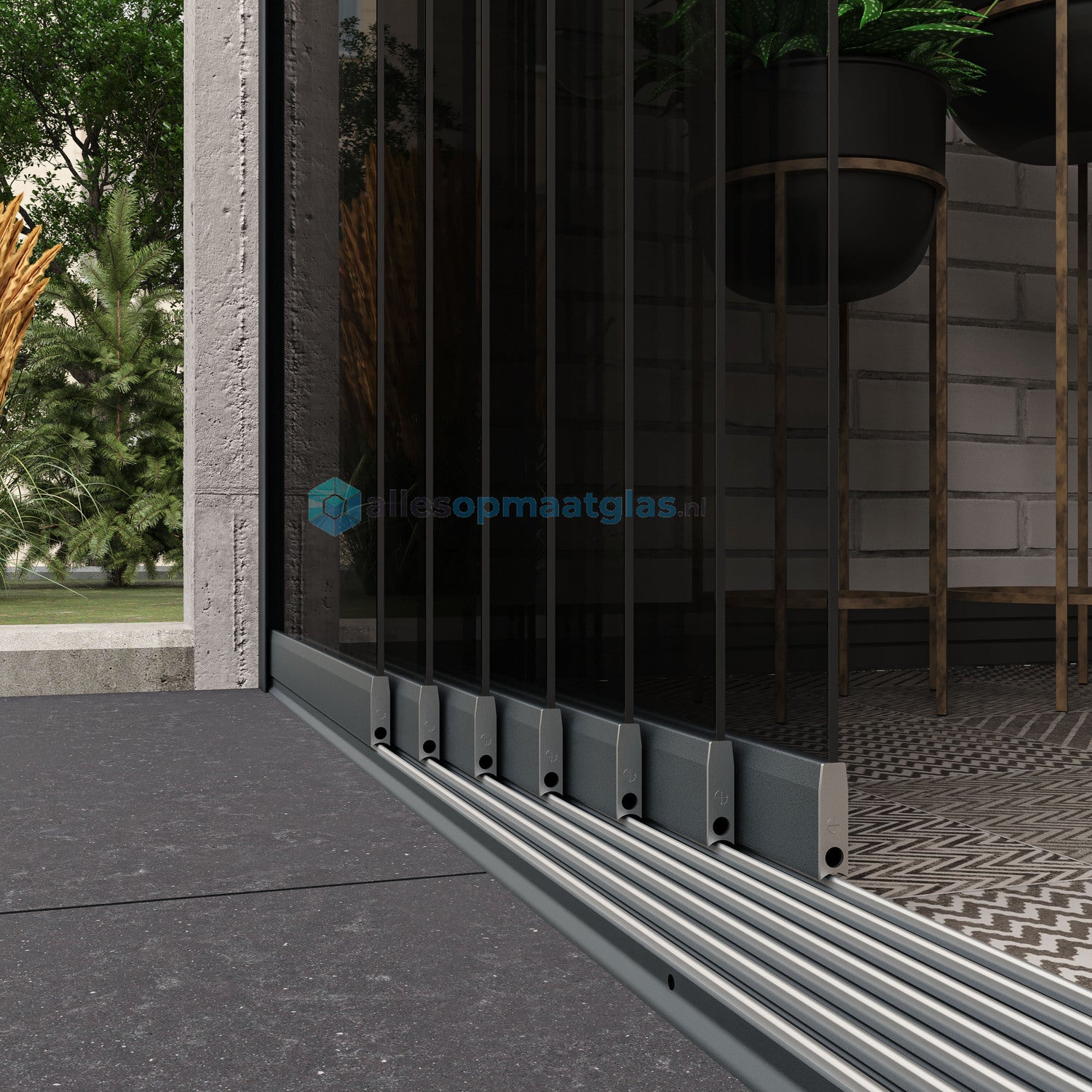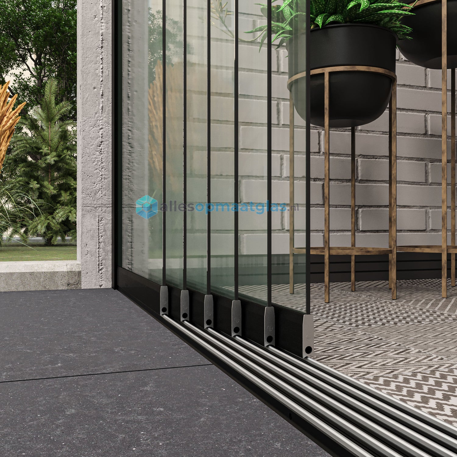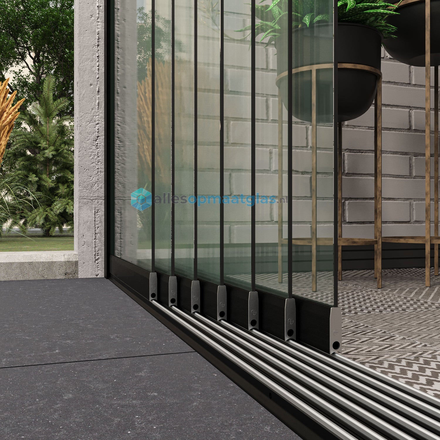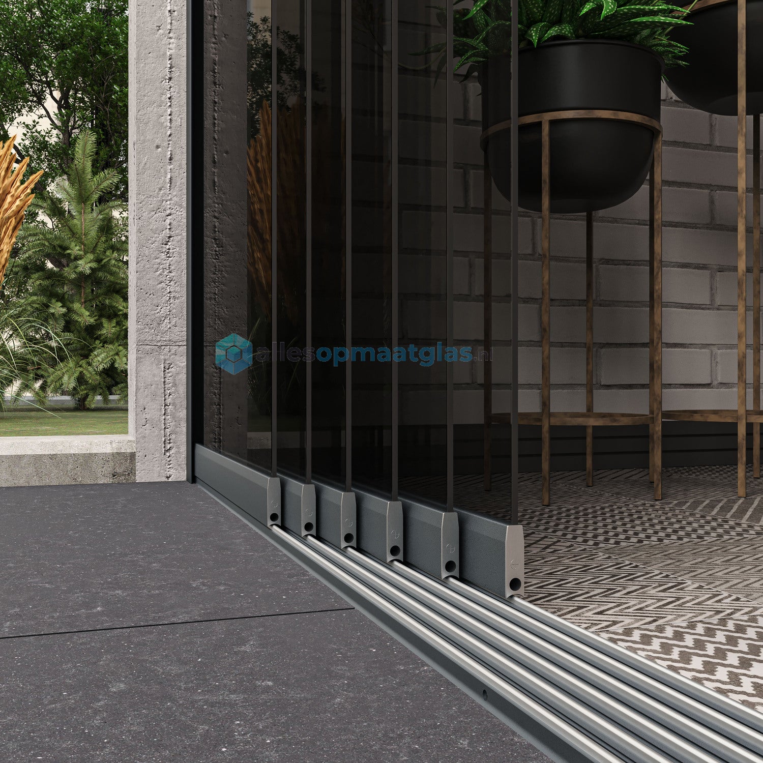 - 7-rails glazen schuifwand → tot maximaal 700 cm