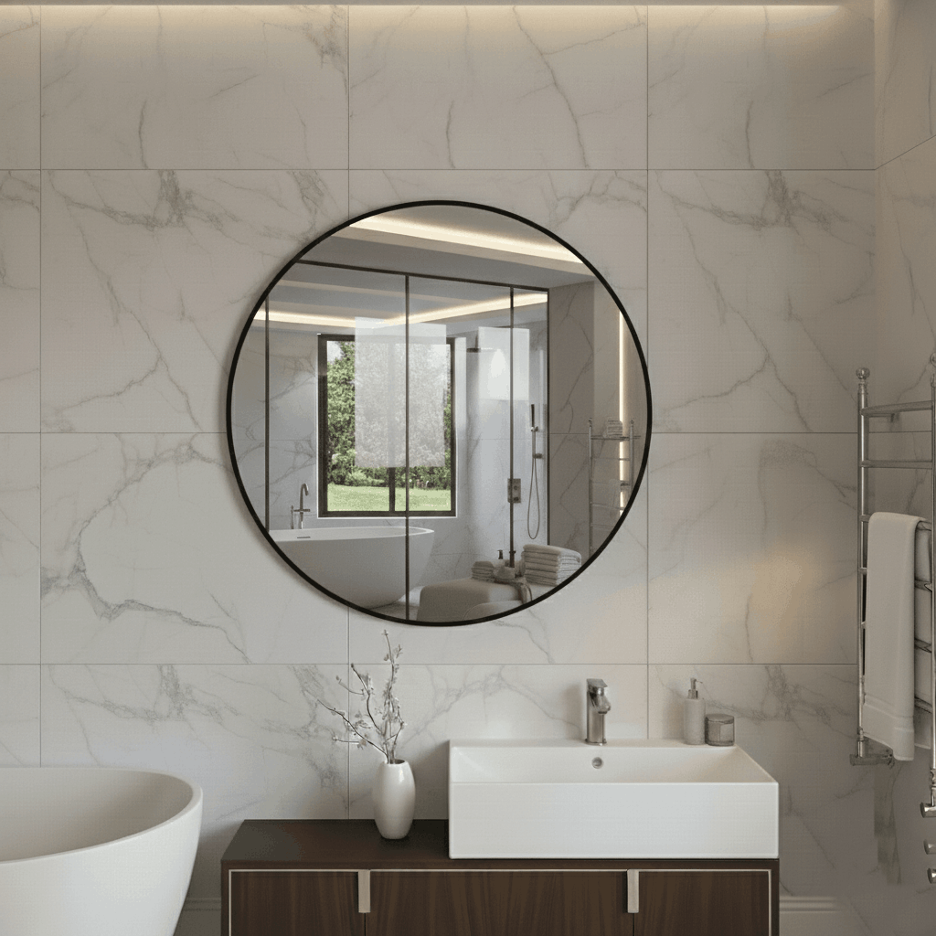 Onze ronde spiegels worden standaard geleverd met een zorgvuldig geslepen, afgeronde rand. Dit zorgt voor een strakke afwerking, veilige hantering en een elegante uitstraling.